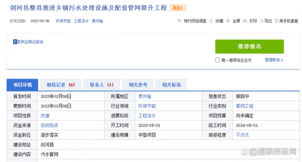 经与业主方沟通得知,截止至2023年2月上旬,对设计单位招标中,文件获取截止时间:2023年02月16日00时00分。管网长度:约91366米;工程投资:约10150.15万元;施工周期:365天;管网工程招标时间:预计2023年3-5月份招标;招标方式:公开招标。